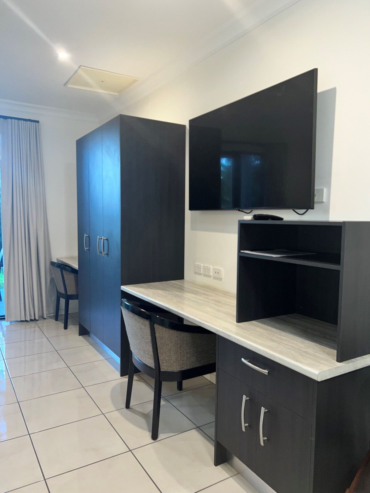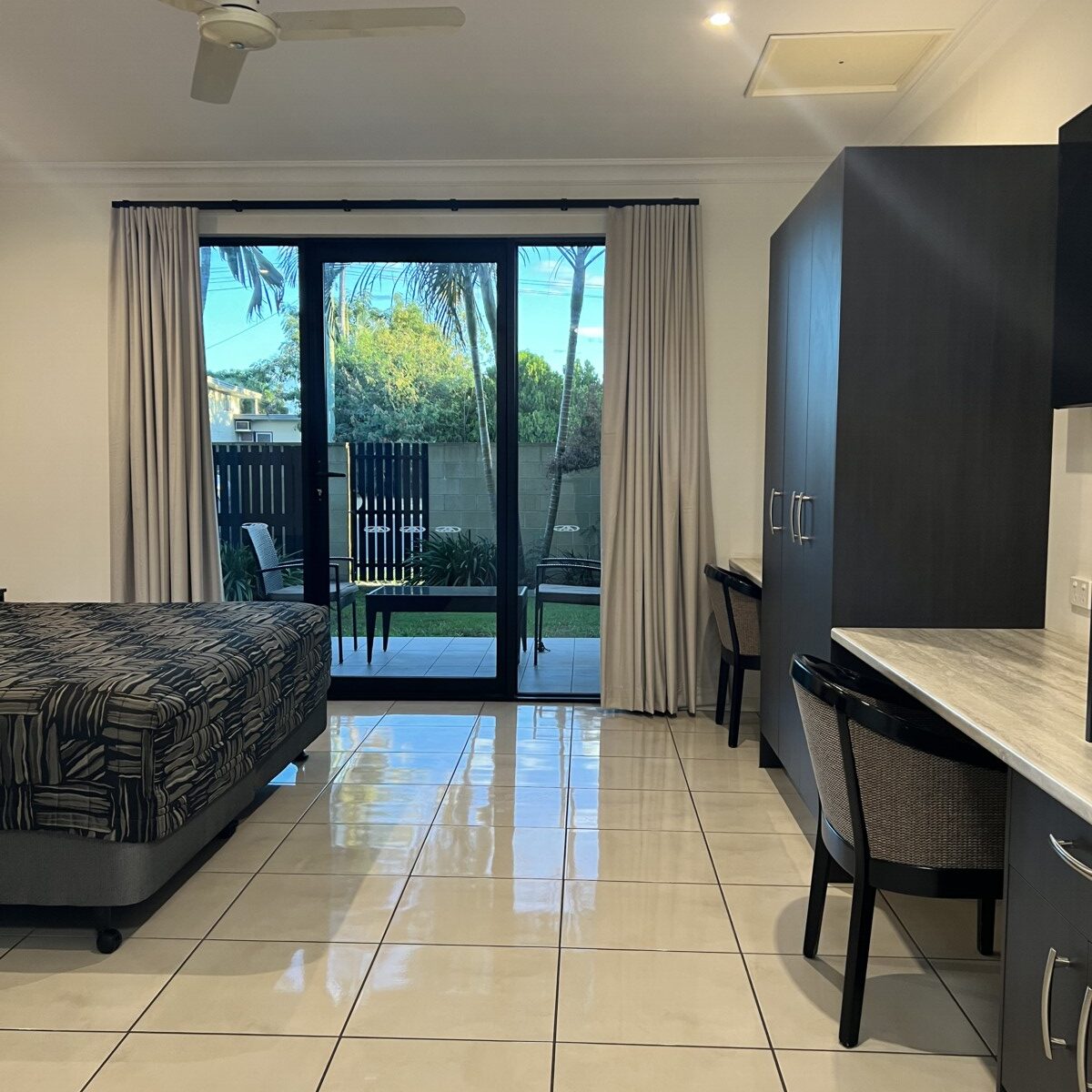 Located in the apartment complex across the road from the motel. A very comfortable nights stay in our newer executive rooms with our new King plush beds, a fully stocked kitchen and a 55inch smart tv. Private balcony to each room.