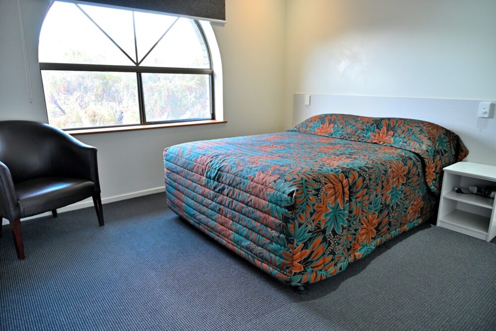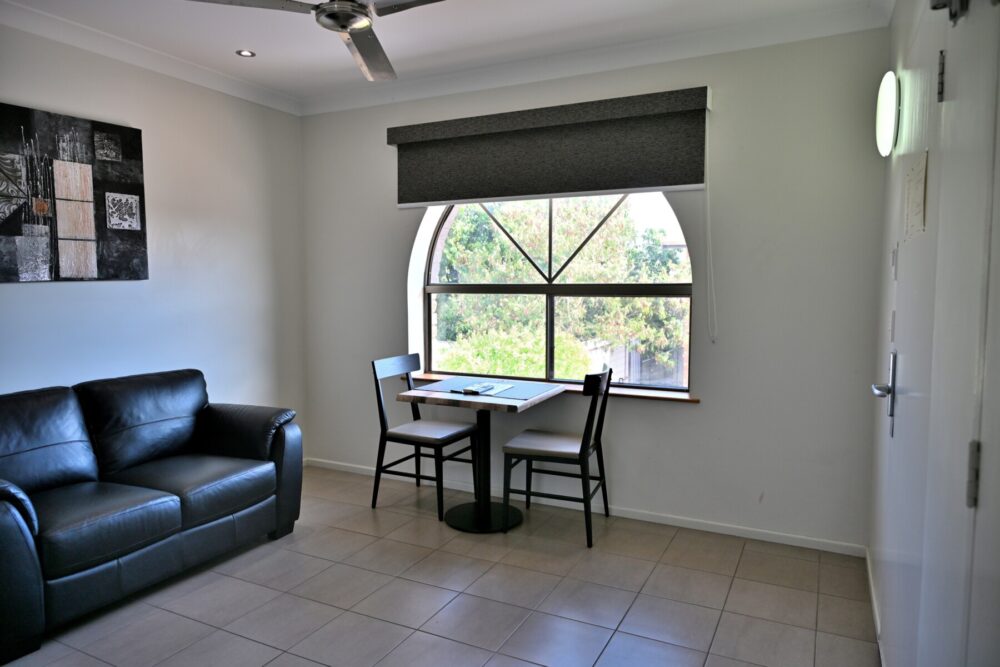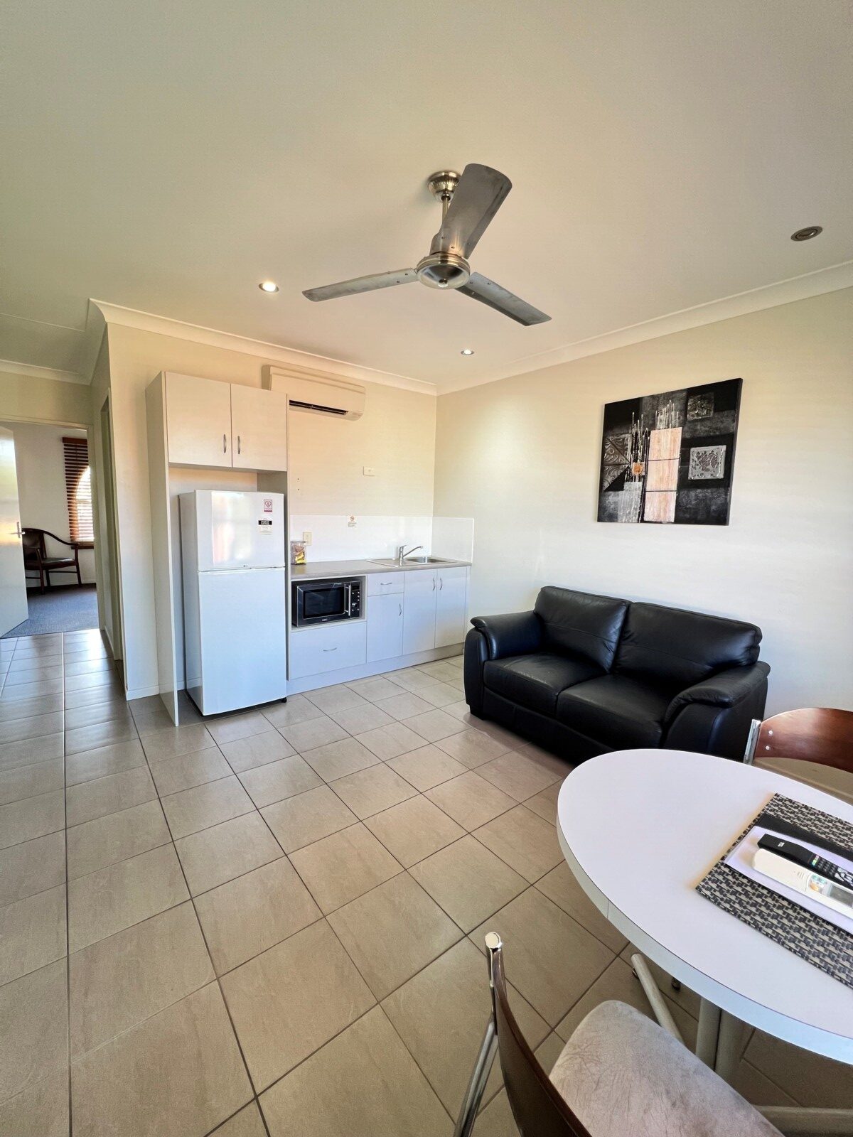 Located in the main motel complex. This room type has one Queen bed in a separate bedroom with a 32inch smart tv. The bathroom has a bathtub with step in shower, and the kitchenette area contains a dining table and chairs along with a couch.