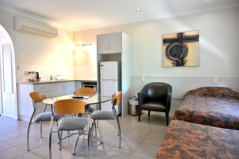Located in the main motel complex. Our superior family room offers one Queen bed and one single bed in one seperate bedroom and three singles in the main living area. A fully stocked kitchenette is in the room with a dining table and chairs. A 55inch smart tv is in the main area and a second tv in the bedroom.