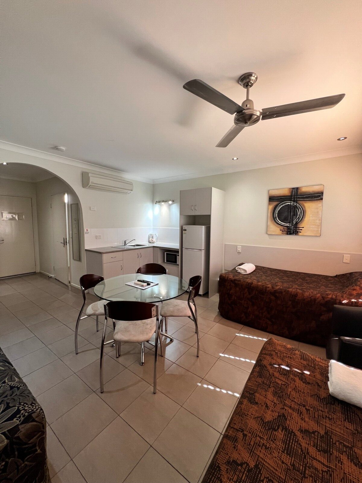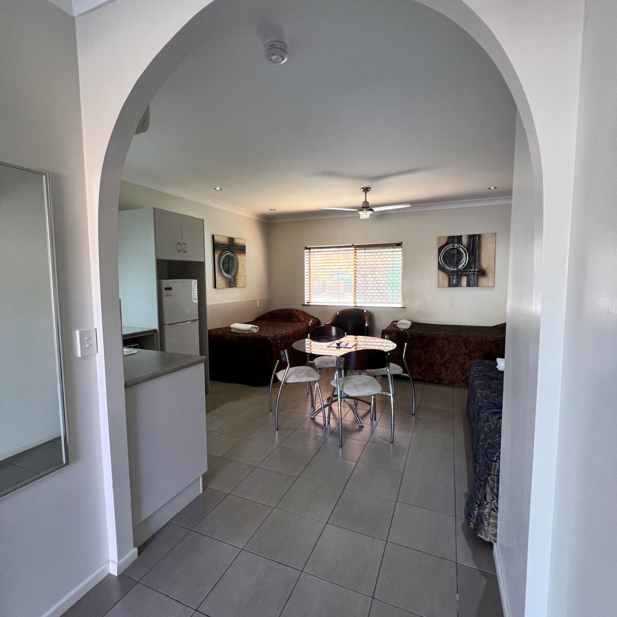 Located in the main motel complex. Our superior family room offers one Queen bed and one single bed in one seperate bedroom and three singles in the main living area. A fully stocked kitchenette is in the room with a dining table and chairs. A 55inch smart tv is in the main area and a second tv in the bedroom.