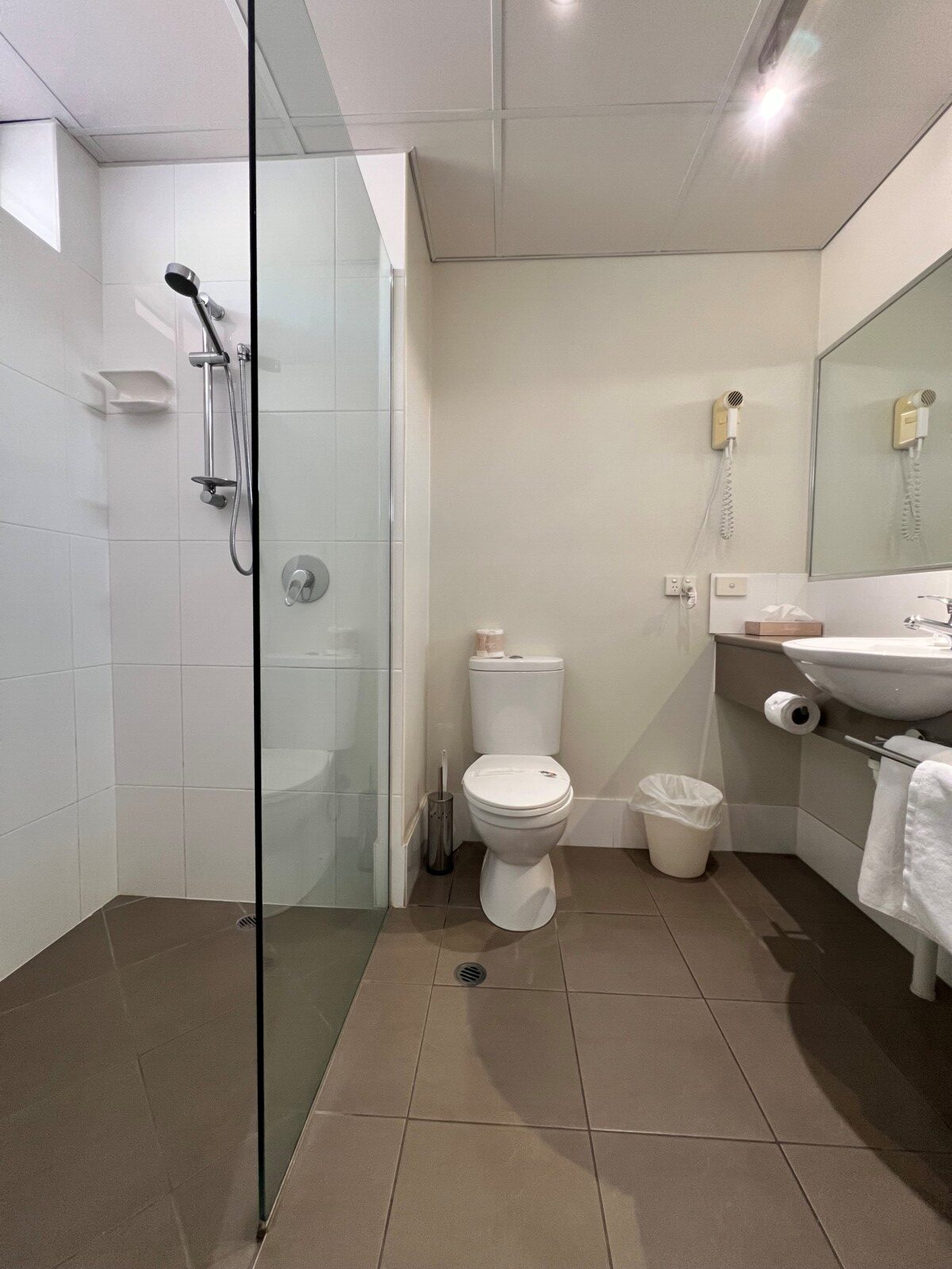 Walk in shower, air conditioning, room service, high speed internet, table and chairs, hair dryer.