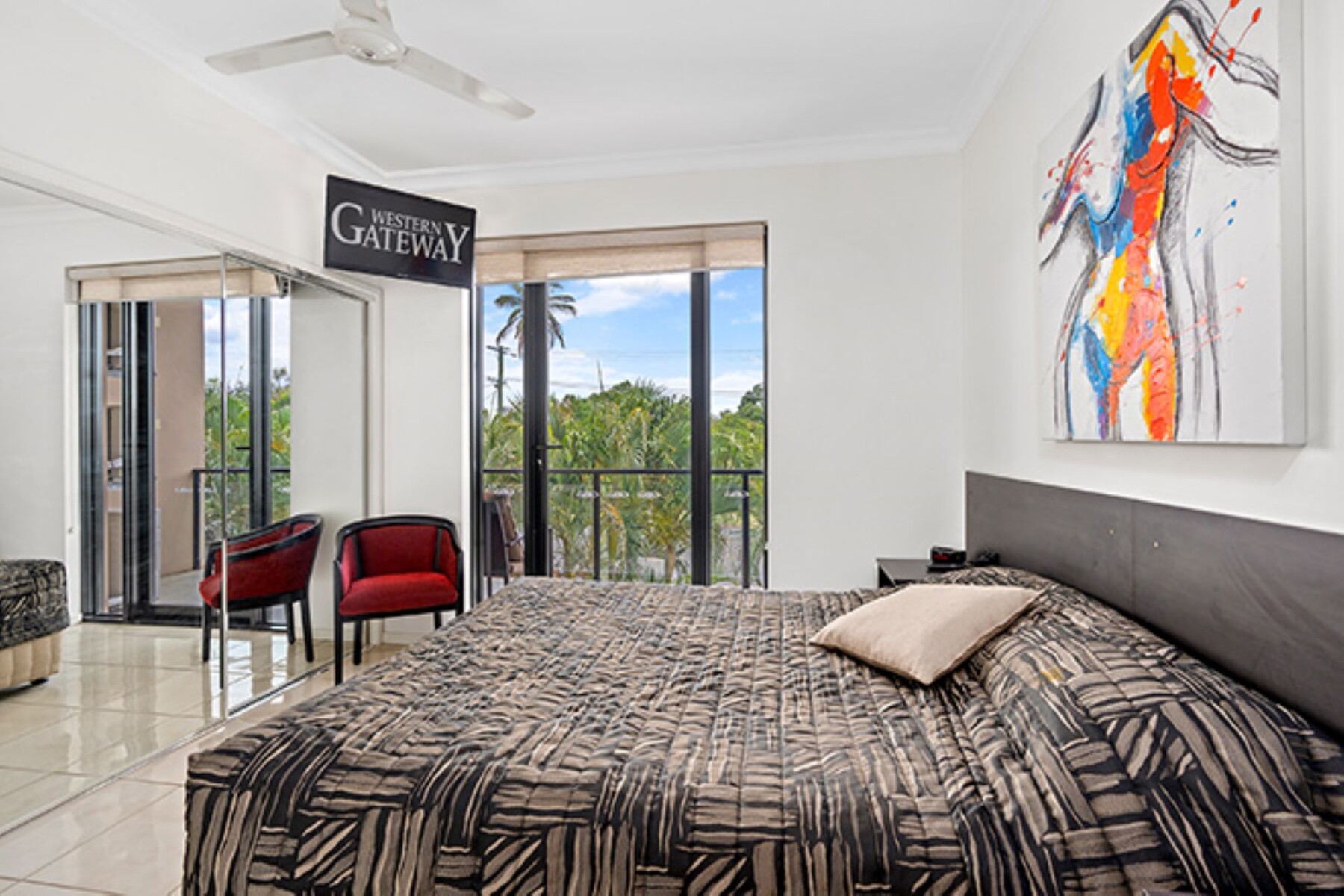 Located in the apartment complex across the road from the motel. A very comfortable nights stay in our newer executive style full apartment offering two bedrooms each with private ensuite, a full size kitchen with full size refrigerator, washer and dryer, lounge area with 55inch smart tv and large balcony.